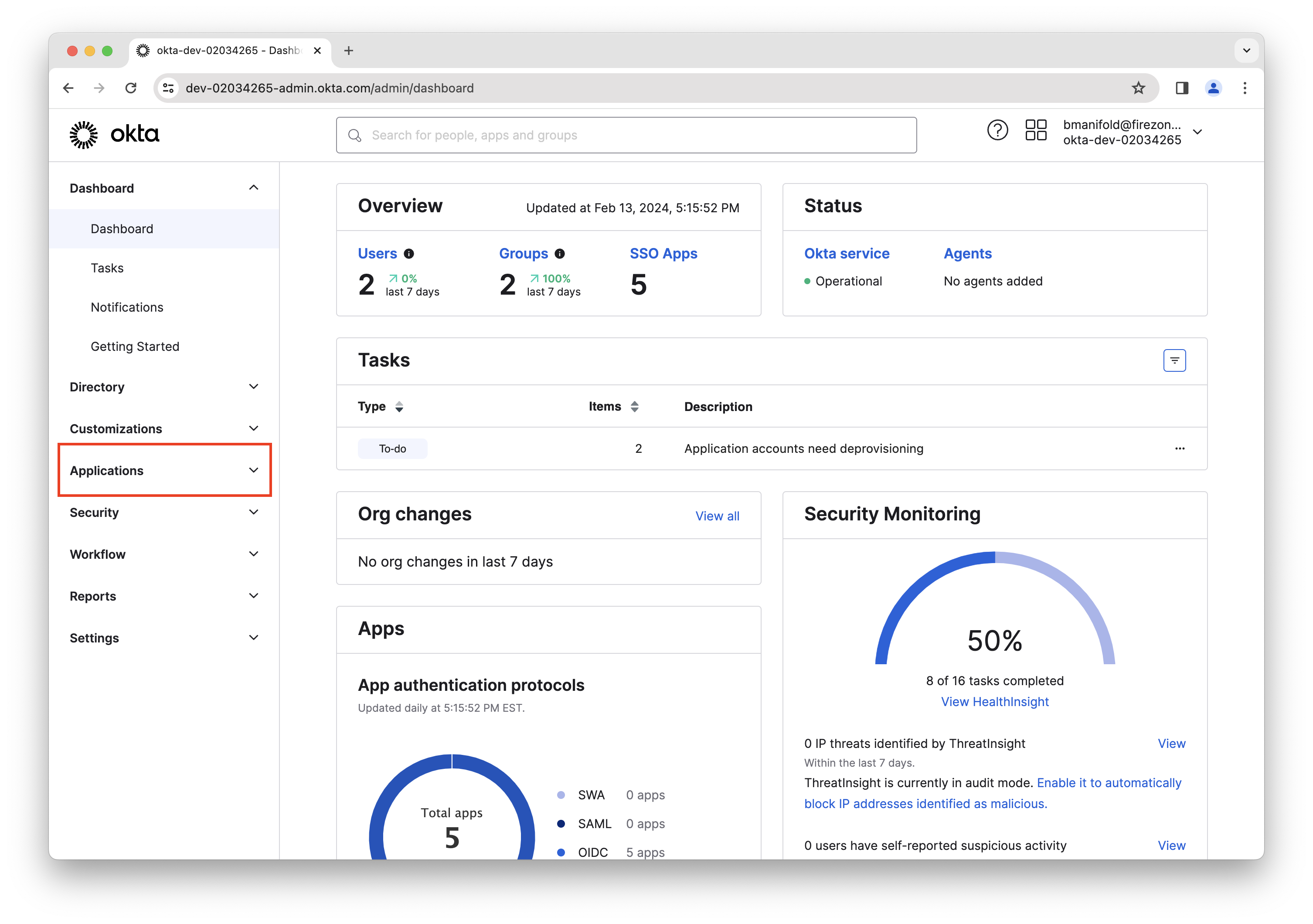 In your Okta admin portal, go to Applications -> Applications in the left sidebar.