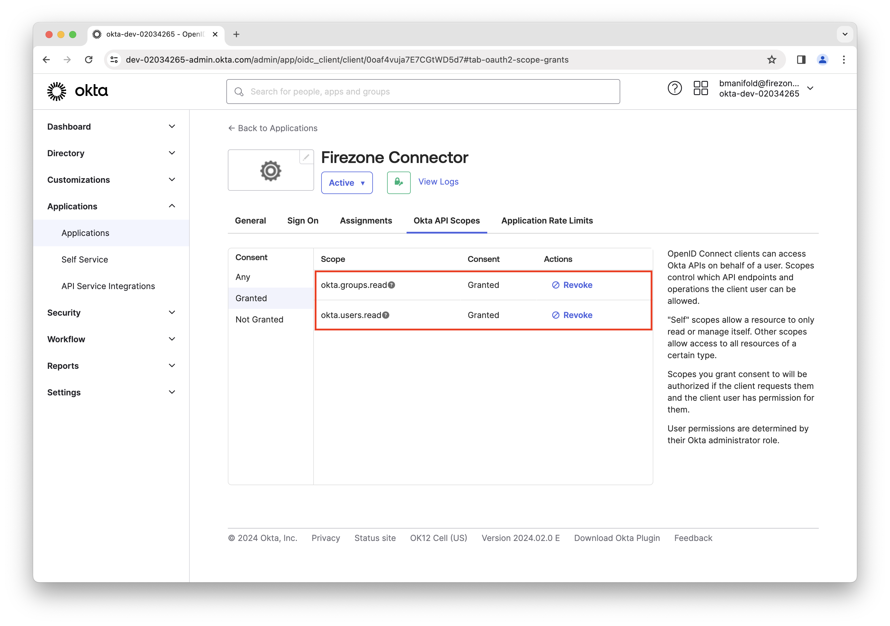 On Enterprise plans, users and groups are synced every few minutes to ensure that your Firezone account remains up-to-date with the latest identity data from Okta. Read more about how sync works.