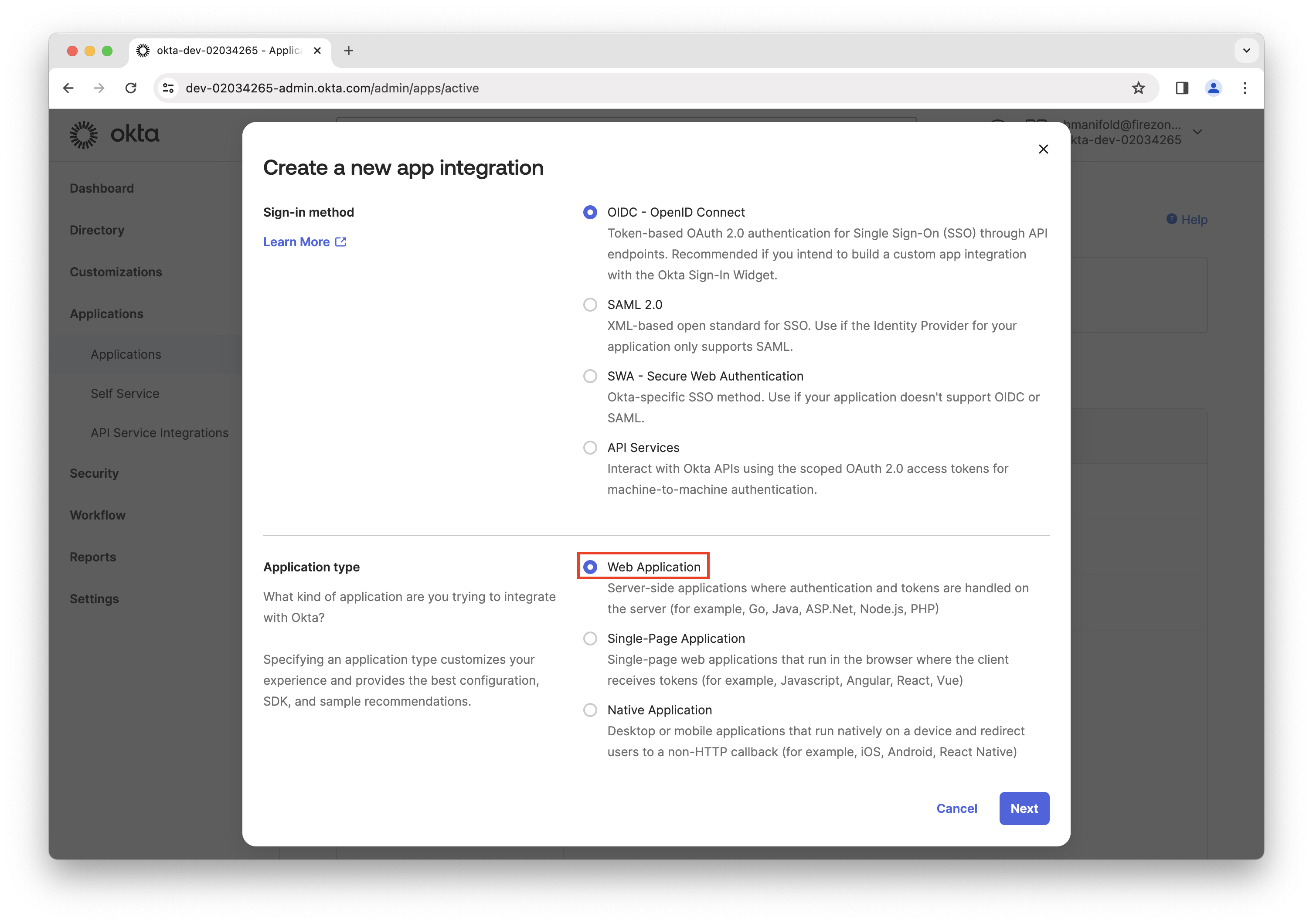 Firezone integrates with Okta using a custom connector that supports both authentication and directory sync. Use this guide if you're looking to setup SSO with Okta for your Firezone account and optionally sync users and groups from Okta to Firezone.